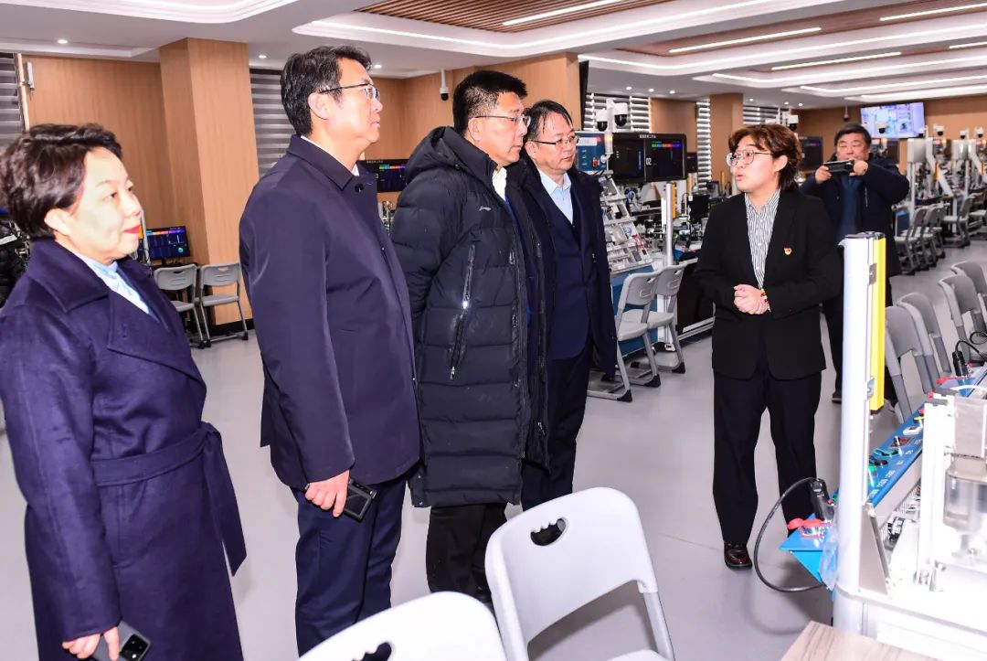 在胡晓梅、李康举陪同下,刘广林、李斌一行参观了我校智能制造实训中心、机器人实训中心、中俄食品生物技术国际联合实验室、东北林草危险性有害生物防控国家林草局重点实验室、浪潮工业互联网学院联合创新中心以及学前教育学院实训中心。