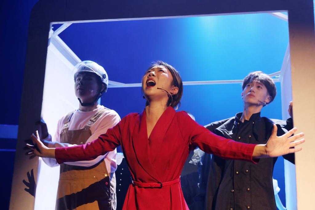 2021沈阳艺术节由中共沈阳市委宣传部、沈阳市文化旅游和广播电视局主办。我校排演的《谁偷走了门的时间》讲述了一个发生在与现实世界平行空间的科幻故事,以先锋姿态重新结构时空,在梦呓般的现实中寻找更加纯粹的心灵。表演专业的学生们在表演专业教师、本剧导演李龙的带领下,以大胆的想象、精彩的演绎生动刻画了人性、生命以及“门里”“门外”的缥缈和虚无。该剧由表演专业独立创作完成。表演专业全体教师参与创作指导,影视表演、导演创作、音乐剧表演三个工作室的大一至大三年级共计21名学生参加演出制作,展现了该专业在编、导、演、制方面的综合创作实力,为本土的戏剧发展贡献了沈工力量。
